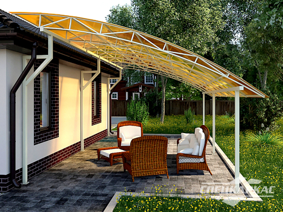 Навес из листов поликарбоната способен стать настоящей «изюминкой» частного дома и приусадебной территории. Полупрозрачные сооружения эстетичны и надежны. Их устанавливают всего за 1-2 дня, за ними легко ухаживать – достаточно чистой воды и неабразивного средства. На первый взгляд кажется, что без такой конструкции вполне можно обойтись. Но стоит купить навес из поликарбоната от компании «Спецкаркас» – и жизнь станет намного проще и комфортнее. Ваше авто больше не будет ржаветь под дождем, крыльцо останется чистым даже в снегопад, на участке появится уютная зона отдыха в кругу друзей и близких.